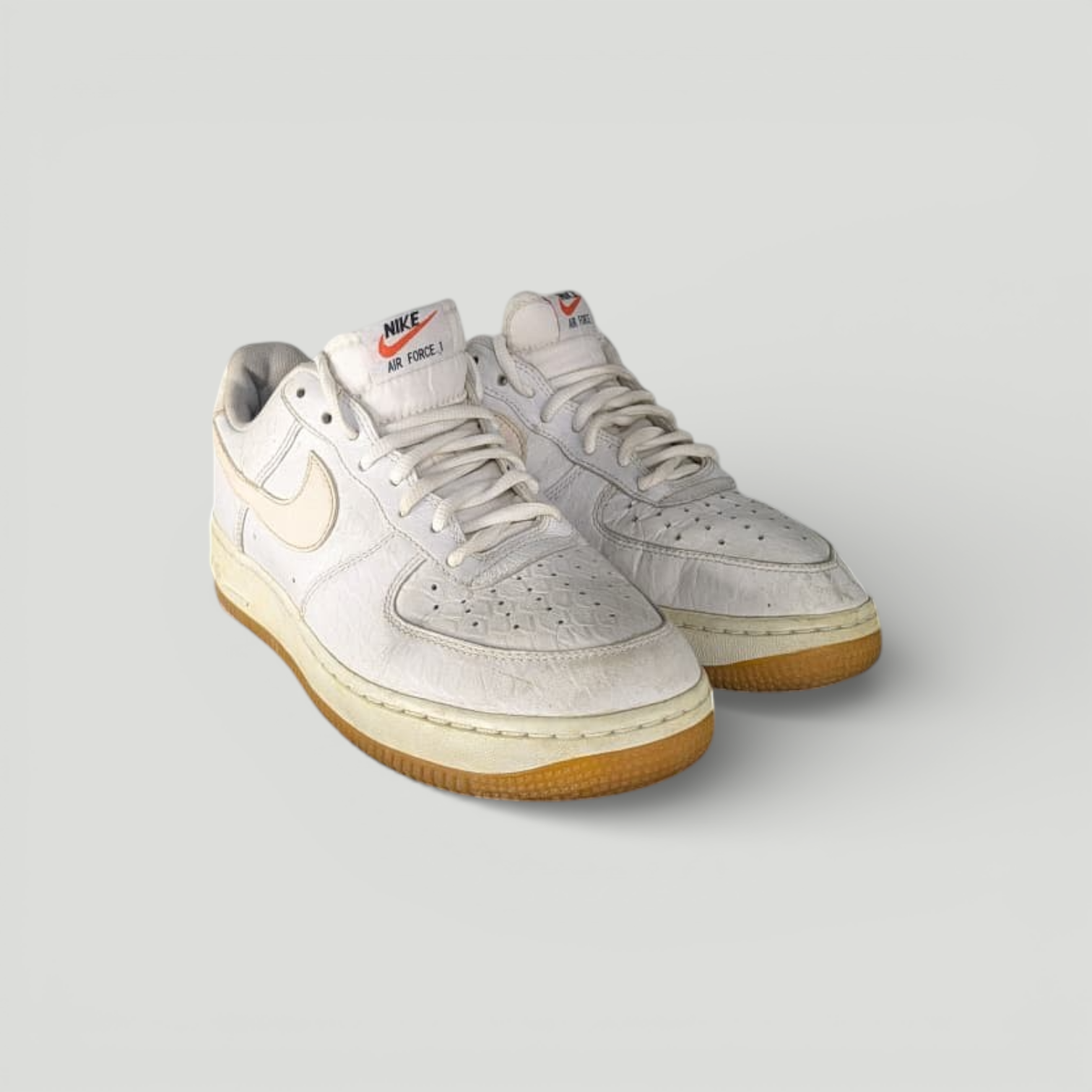 This is a pair of used Nike Air Force 1 low-top